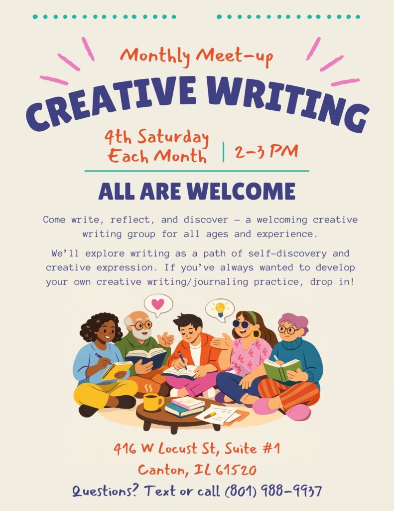 We’ll explore writing as a path of self-discovery and creative expression — no pressure, no judgment, just curiosity and connection.